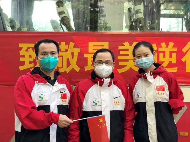 3月20日下午,广东省支援湖北武汉和荆州医疗队部分队员在圆满完成支援任务后,搭乘高铁返粤,中共广东省委书记李希、省长马兴瑞前往广州南站迎接。我校农工党基层委员会副主委、第一附属医院副院长杨忠奇平安凯旋。