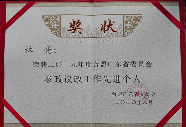 6月14日,台湾民主自治同盟广东省第八届委员会第四次全体会议在省民主大楼召开,台盟广东省委会常委、我校校办副主任林亮同志荣获2019年度“台盟广东省委员会参政议政工作先进个人”荣誉称号。此外,林亮同志撰写的论文《多党合作薪火相传,铭记历史同心协力》,在台盟中央为庆祝中华人民共和国70周年举办的“我们与奋进的70周年”征文活动中荣获三等奖。
